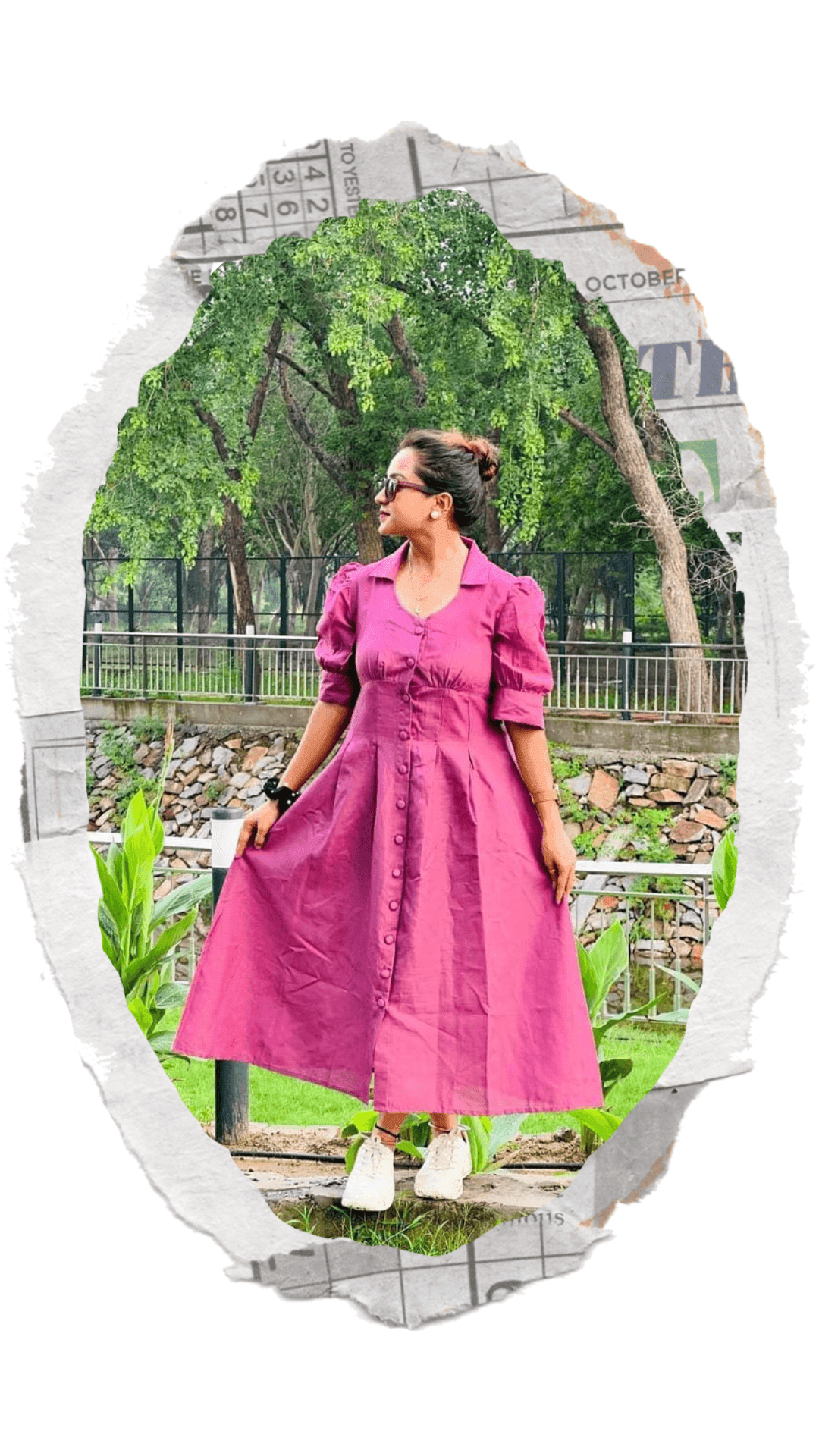 Rayon Fabric Frock with Puff Sleeve V neck lace collar style